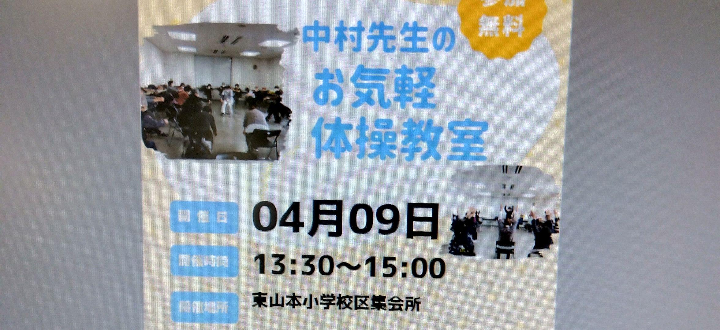 4月9日 中村耕平先生のお気軽体操に参加で100やおやお😊